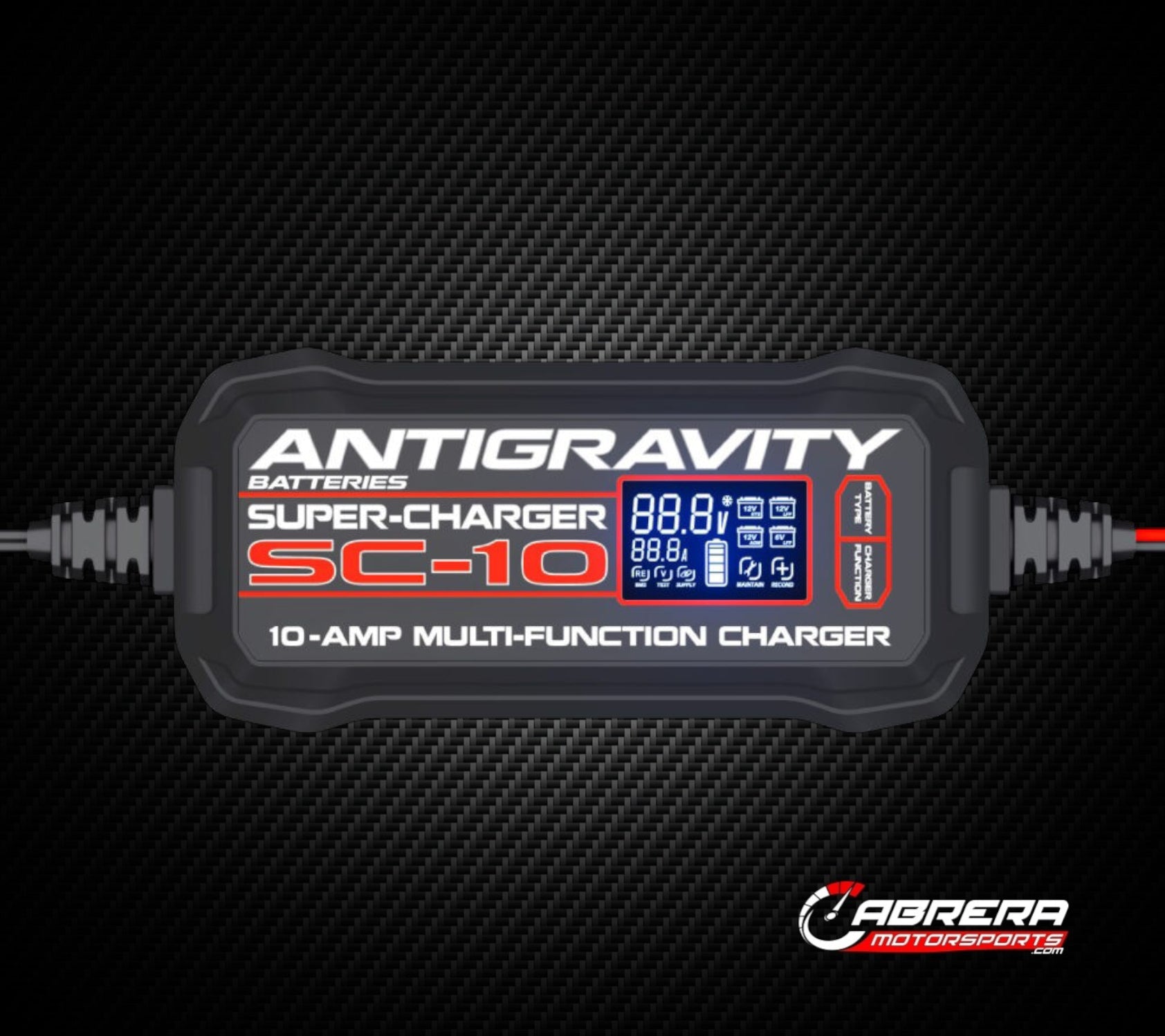 Antigravity SUPER-CHARGERS are the next generation charger for Automotive, Motorcycle and Powersport Batteries. They offer the latest charging technology plus features and functionality surpassing what the average charger can do. The SC-10 is our super-fast-charging 10-Amp model which is perfect for Lithium or Lead/Acid battery capacities of 10 to 200Ah.